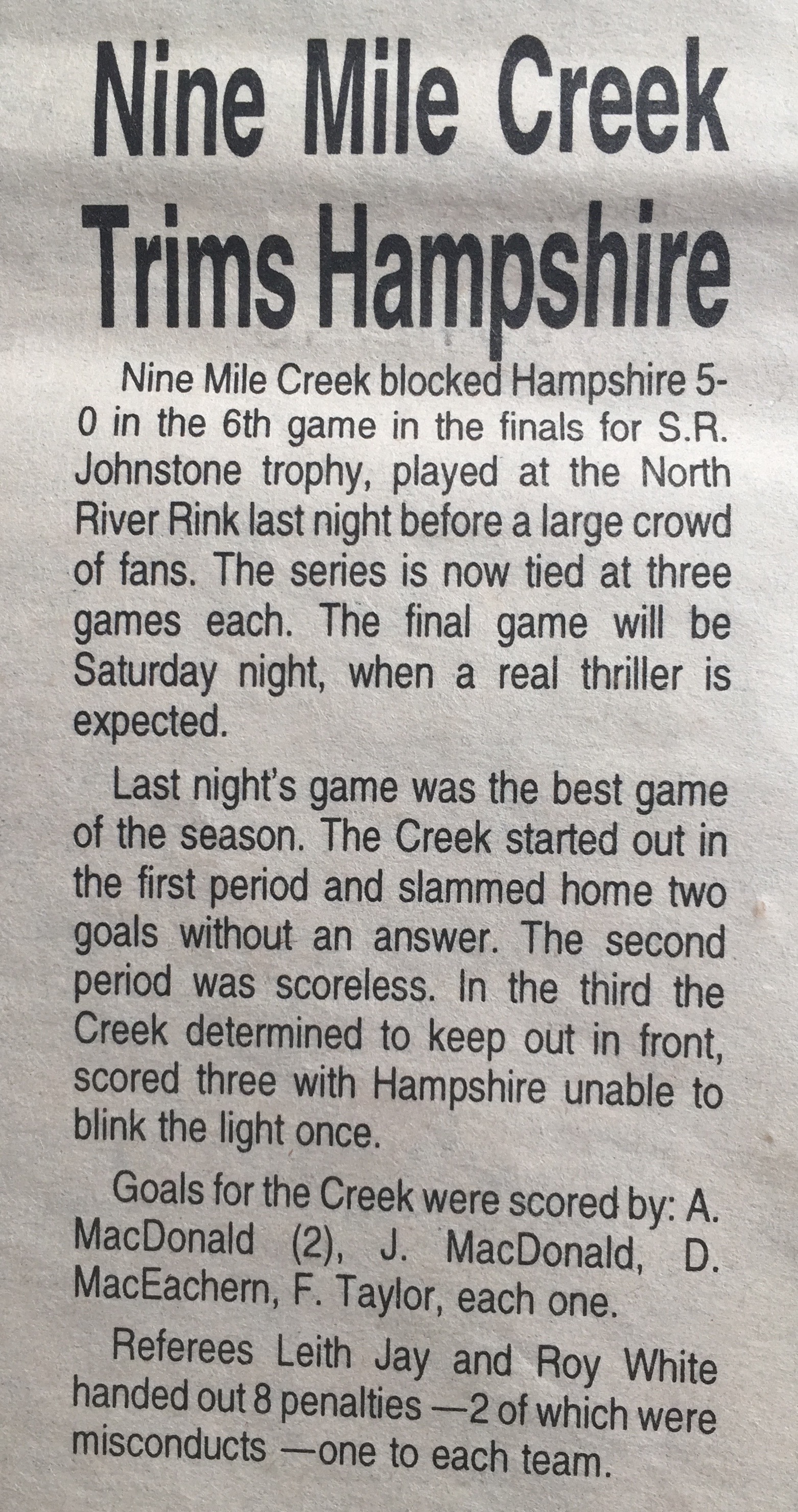 Lots of great hockey games (cheering loudly for the Nine Mile Creek Bulldogs) and skating at the North River Rink and every time I hear the song “On The Wings Of A Snow White Dove” I am reminded of happy times at North River Rink! <3