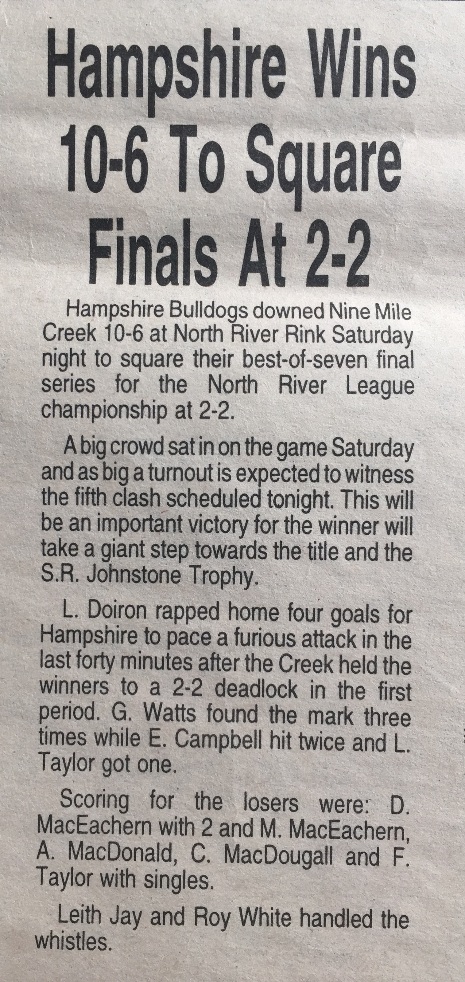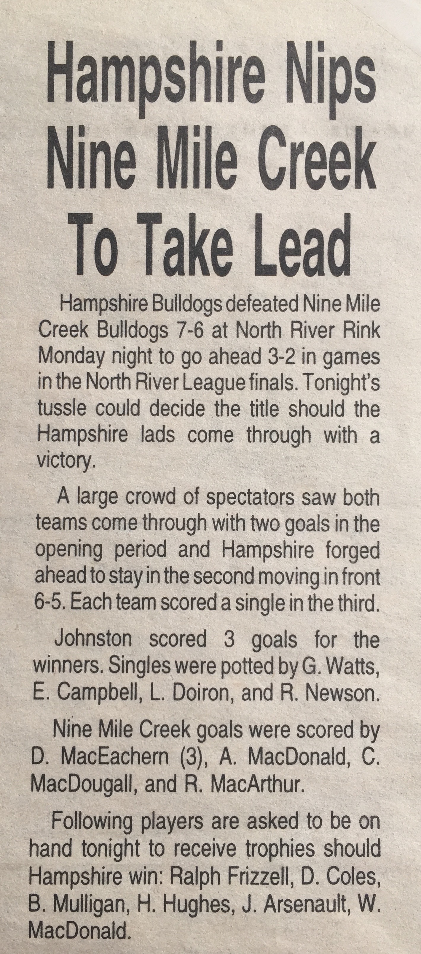 Your Watts cousins loved watching you play hockey in PEI Billie. It truly was a joy to say “that is our Cousin out there”..