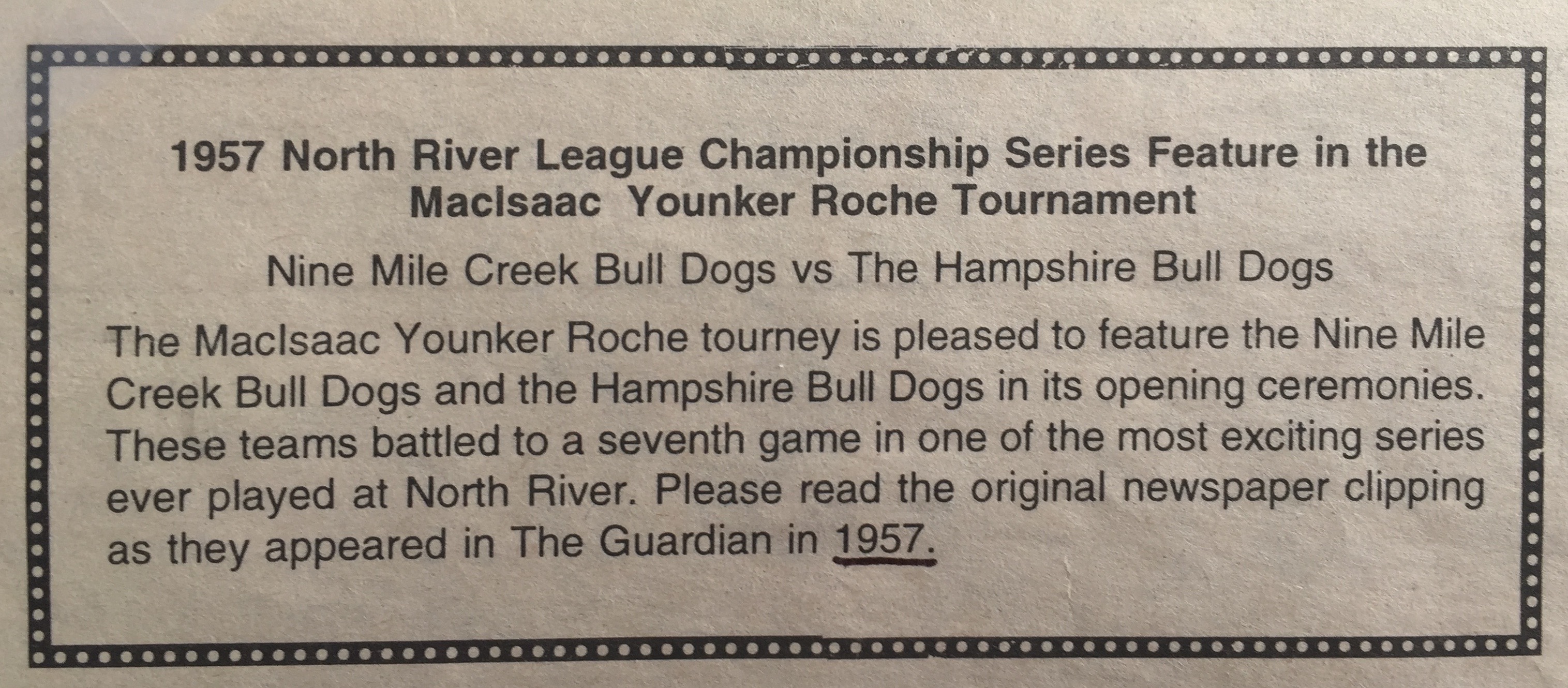 Many of the alumni players attended this Clyde River lecture and they brought along memorabilia and photos which we scanned and collected on this site. Scoll to end of article to see photos. Many of the people are identified in the photos, but for those that are not, we welcome you to add comments to let us know who you recognize. If you have any other photos that you wish to add to the album, please send to vivian@eastlink.ca.