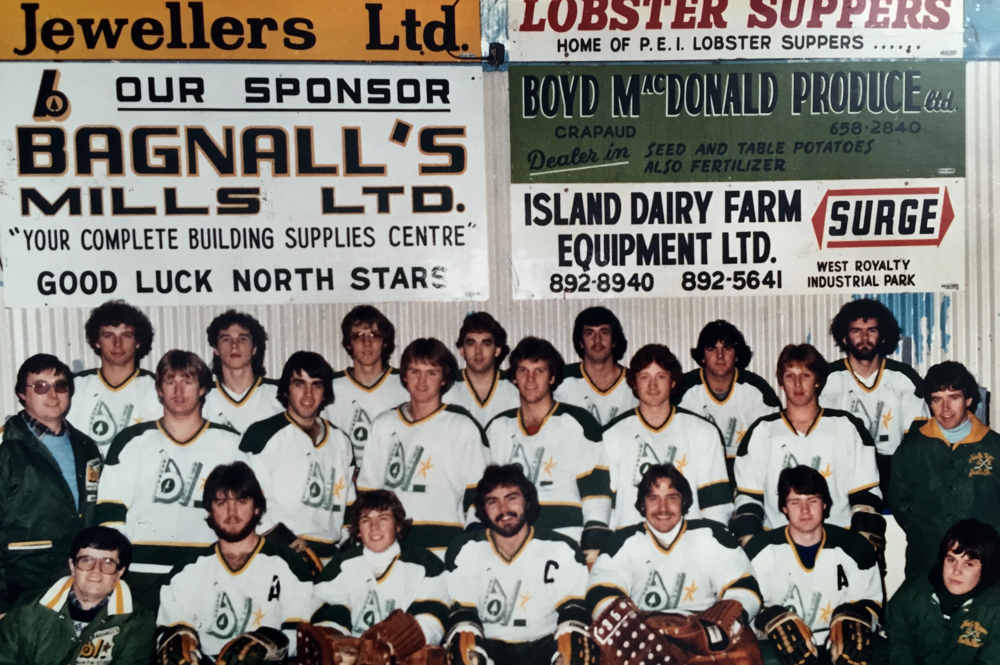 Hollis rented out the ice for $22/hour and was busy as the only other rinks in the area were UPEI and the Forum in Charlottetown. As well as minor hockey, Hollis hosted High School hockey. The Kennedy’s – Forbie, Jamie and Jake – offered a hockey school program each Spring. Hollis introduced Junior Hockey and for several years, the Junior North Stars were a powerhouse and fan favourite, packing the rink.